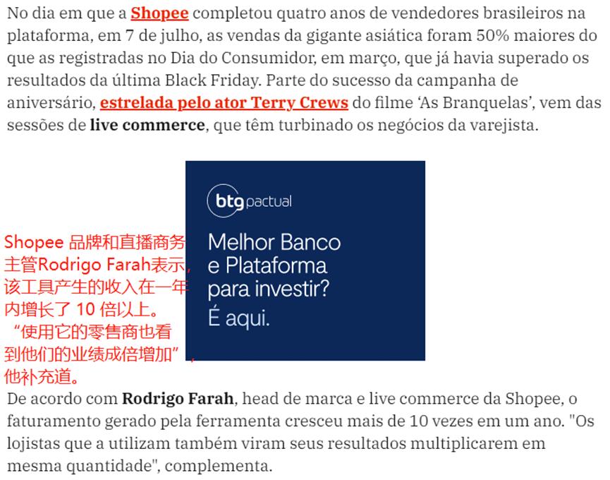 文章來源于互聯(lián)網(wǎng):直播帶貨收入暴漲十倍,Shopee成功拿下巴西市場(chǎng)