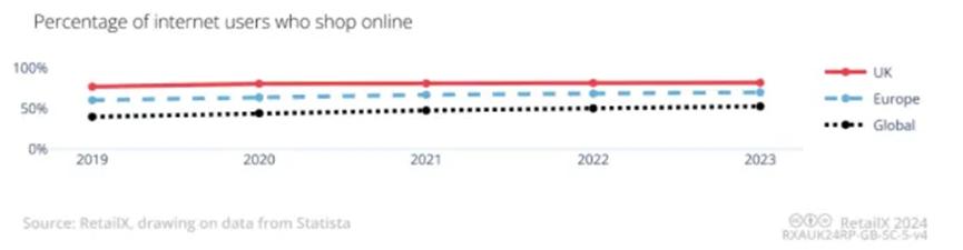 英國網(wǎng)購用戶滲透率 圖源:RetailX
