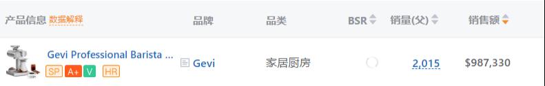 SellerSprite數(shù)據(jù)顯示,過去30天內(nèi),Gevi旗下多款咖啡機銷量均超過2000臺,其中一款專業(yè)級咖啡機更是以月銷2015臺的佳績脫穎而出,直接促成了98.7萬美金的銷售額。