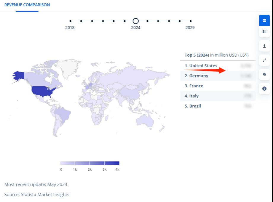 美國是全球咖啡機市場收入最高的國家 圖源: Statista?