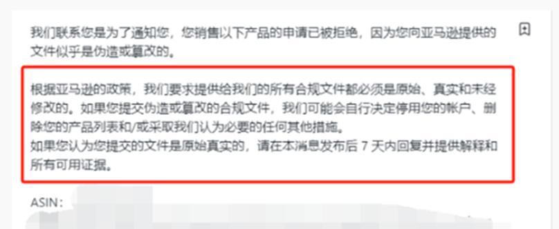 其實,不僅僅是CPSC,各大電商平臺也非常重視產(chǎn)品安全問題,近年來紛紛收緊了監(jiān)管,對不注重合規(guī)問題的賣家重拳出擊。就在前段時間,一位亞馬遜賣家發(fā)帖稱自己的店鋪被平臺封禁了,理由如亞馬遜在郵件中所說:“您向亞馬遜提供的文件似乎是偽造或篡改的……我們可能會自行決定停用您的賬戶?!贝速N一出,不少賣家也紛紛表示自己的產(chǎn)品合規(guī)證書出了問題,因此被平臺封號了。