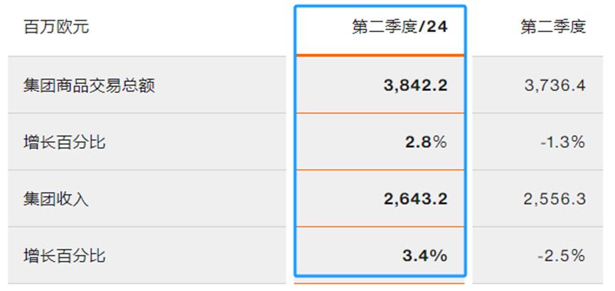 具體來說,2024年第二季度,Zalando商品交易總額(GMV)達(dá)38億歐元,同比小幅提升2.8%,季度收入達(dá)到26億歐元,同比增長3.4%。另外,今年第二季度,Zalando還成功提高了自己的盈利能力,調(diào)整后的息稅前利潤(EBIT)增至1.716億歐元,高于上年同期的1.448億歐元,并且利潤率也上升8個點(diǎn)達(dá)到6.5%。