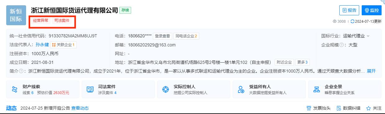 浙江新恒貨代被列為經(jīng)營(yíng)異常 圖源:天眼查