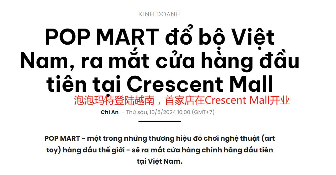 繼新加坡、馬來西亞、泰國之后,越南成為了泡泡瑪特海外擴張的第四站。今年五月,泡泡瑪特在越南連開兩家線下門店,分別是巴拿山樂園古堡主題店和胡志明市的Crescent Mall首家門店,標志著品牌在越南市場的全面布局正式拉開序幕。