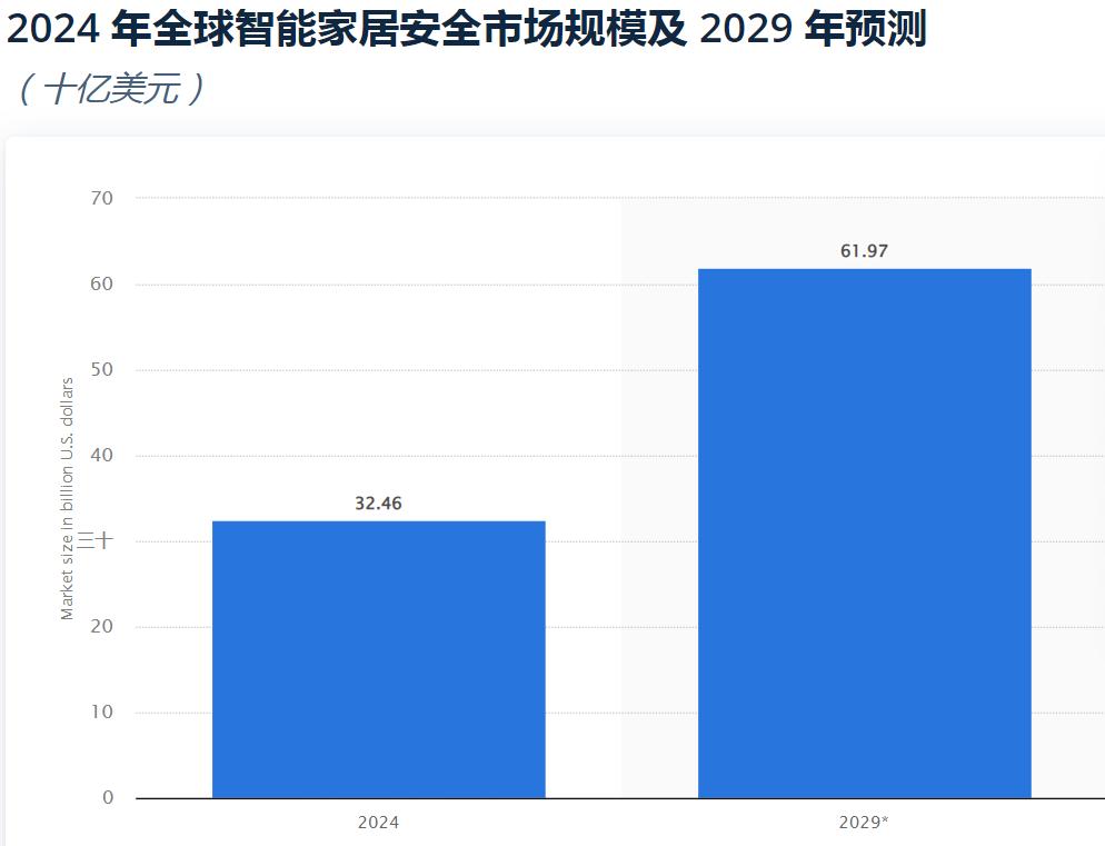 當然了,站在風口上才能飛得更高,螢石網(wǎng)絡在智能安防用品市場上的佳績離不開巨大的市場需求的助攻。來自Statista的預測顯示,2024年,全球智能家居安全市場規(guī)模約為325億美元,這一數(shù)字到2029年或?qū)⒃鲩L至620億美元。