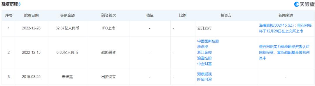 是金子總會發(fā)光的,螢石網(wǎng)絡精彩的表現(xiàn)使其得到了資本市場的青睞。2022年底,螢石網(wǎng)絡正式登陸上海交易所科創(chuàng)板,一舉成為科創(chuàng)板“智能家居第一股”。截至上市,螢石網(wǎng)絡已經(jīng)拿下了多次融資,IPO上市融資金額甚至高達32億人民幣,此前的戰(zhàn)略融資也拿到了6.83億人民幣。