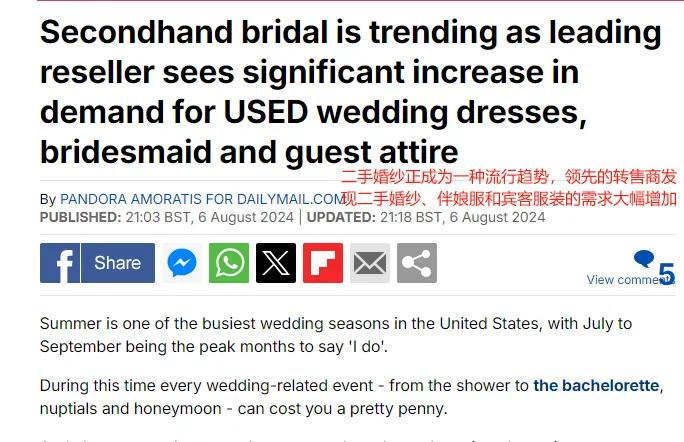 在二手經(jīng)濟(jì)盛行的當(dāng)下,連婚禮大軍也加入其中。