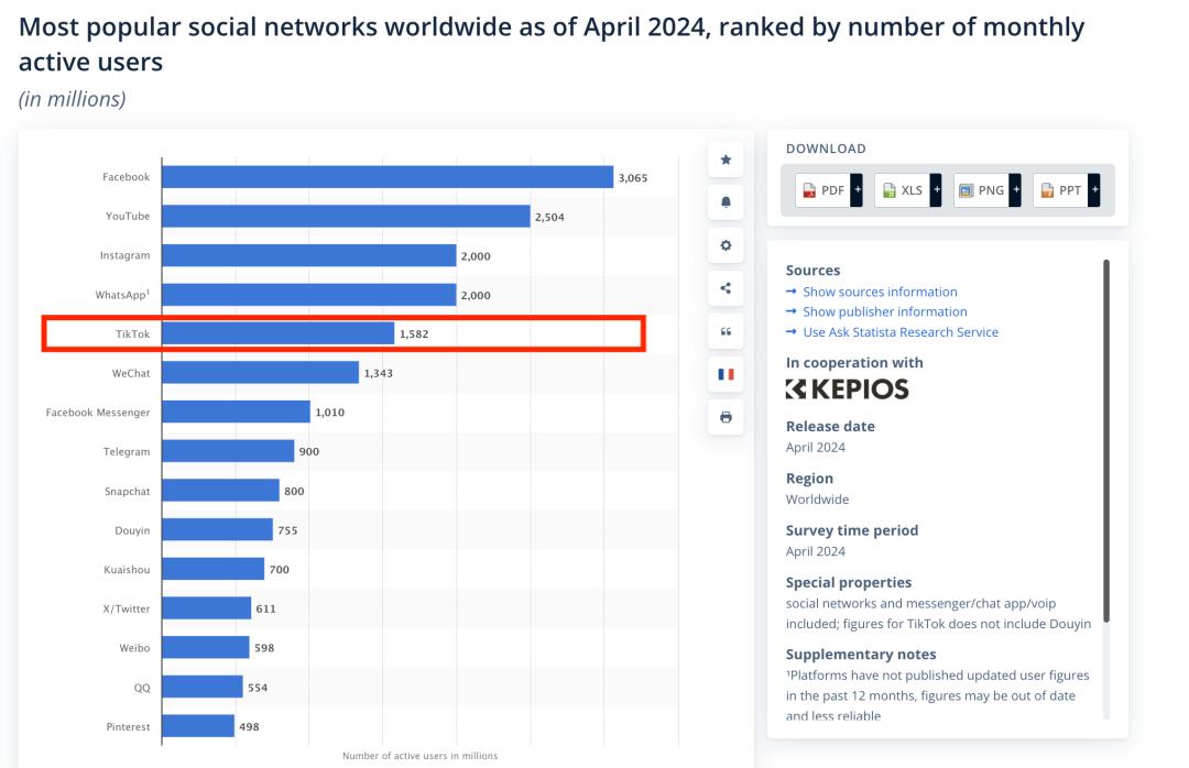 TikTok成全球第五大社交媒體平臺(tái) 圖源:Statista