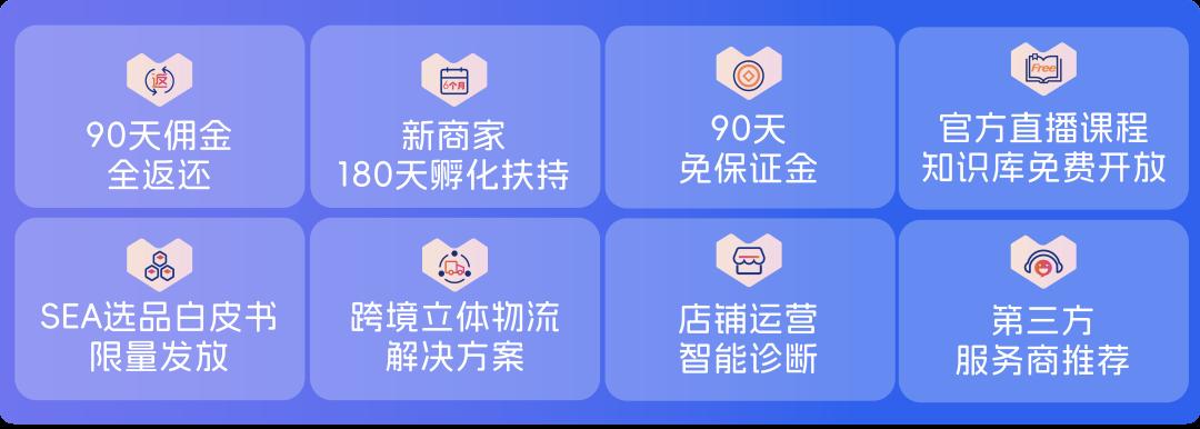 為了給平臺注入新鮮活力, Lazada 2024年新賣家激勵(lì)政策再增一項(xiàng)強(qiáng)有力的新商入駐權(quán)益。截至目前,包含90天免保證金之內(nèi),共有八項(xiàng)新商激勵(lì)政策,包括90天傭金全返還、新商180天扶持計(jì)劃、官方直播課程知識庫免費(fèi)開放、SEA選品白皮書限量發(fā)放、跨境立體物流解決方案、店鋪運(yùn)營智能診斷、第三方服務(wù)商推薦。