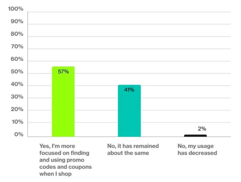 根據(jù)社交儲蓄和促銷代碼平臺Simply Codes的“2024年優(yōu)惠券代碼情緒研究”,有57%的美國消費者在過去一年增加了促銷代碼、折扣或優(yōu)惠券的使用,62%的消費者在網(wǎng)購時會積極尋找并使用優(yōu)惠券等。