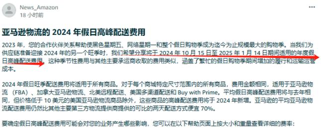 文章來源于互聯(lián)網(wǎng):亞馬遜更新旺季配送費(fèi)率,多類商品物流成本大漲