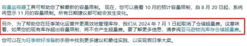 但好在賣家聽到的也并非全是壞消息。今年7月份,亞馬遜官方發(fā)布的一則新聞就顯示,為幫助賣家在繁忙的年底大促期間簡化運(yùn)營并更高效地管理庫存,自2024年7月1日起,亞馬遜將取消超量倉儲(chǔ)費(fèi),更新后的政策適用于美國、歐盟和加拿大站點(diǎn)的賣家。