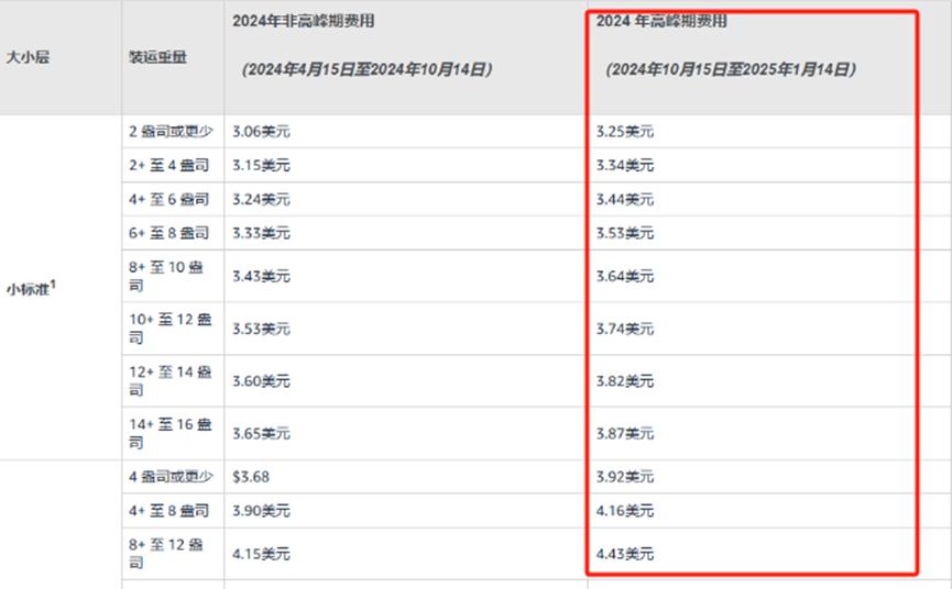 亞馬遜2024年旺季配送費(fèi)率更新 圖源:亞馬遜