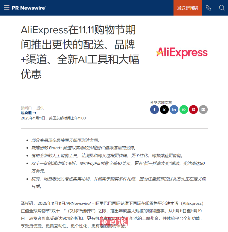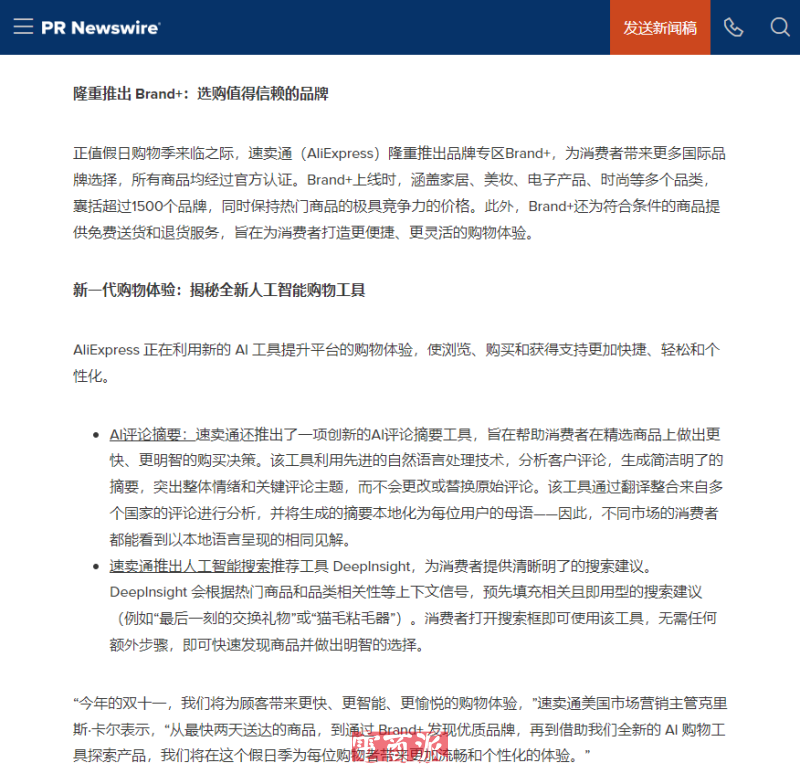 在品牌與流量扶持方面,速賣通推出Brand+頻道,為符合條件的美國(guó)賣家提供品牌精選展示、平臺(tái)內(nèi)曝光、社媒推廣與公關(guān)活動(dòng)對(duì)接等聯(lián)合營(yíng)銷機(jī)會(huì)。Brand+首批上線超過(guò)1500個(gè)品牌,并在部分合格商品上提供包郵與免費(fèi)退貨等更靈活的購(gòu)物保障,以提升消費(fèi)者對(duì)平臺(tái)上“可信品牌”的識(shí)別與轉(zhuǎn)化率。