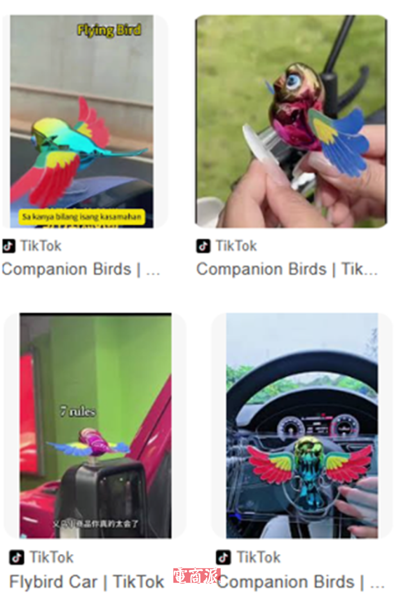 憑借可愛外觀和趣味設(shè)計(jì),“伴飛小鳥”產(chǎn)品一路火到海外。如今在國際社媒平臺(tái)TikTok搜索“Flying Companion Bird Oranment”(伴飛小鳥裝飾品),能看到大量相關(guān)種草視頻,社媒熱度持續(xù)攀升。