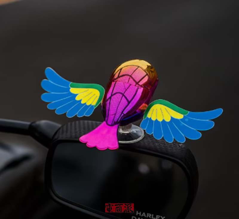 具體來說,這款玩具主要由塑料合金制成,立體造型仿照了真實(shí)小鳥的身形結(jié)構(gòu),比例協(xié)調(diào),圓潤可愛。而產(chǎn)品最大的亮點(diǎn)在于其仿生撲翼設(shè)計(jì),小鳥的兩只翅膀采用特殊材質(zhì)和工藝制成,車速達(dá)到30碼以上時(shí)就會(huì)隨風(fēng)上下煽動(dòng),像極了鳥類飛行的撲翼動(dòng)作。