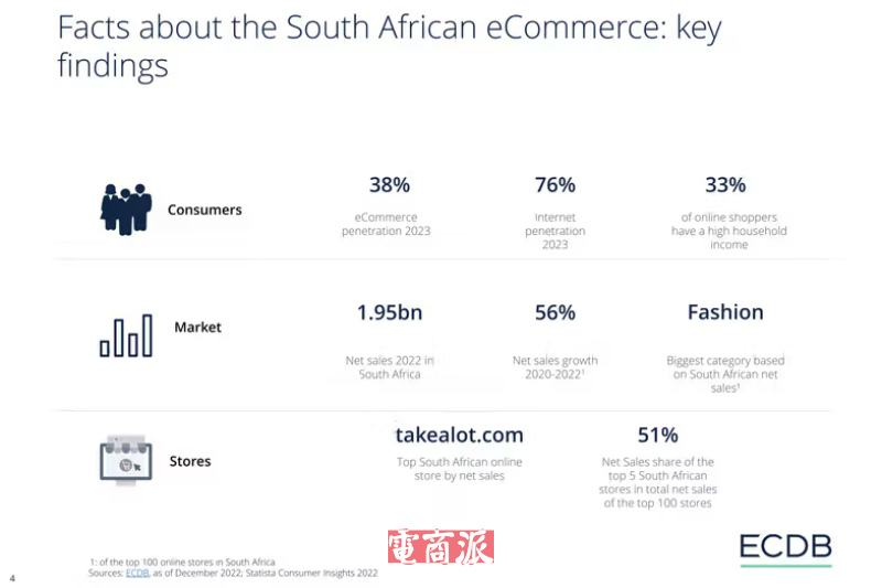 不得不說(shuō),從南非自身的“條件”來(lái)看是相當(dāng)優(yōu)異的:作為非洲第二大經(jīng)濟(jì)體,消費(fèi)能力在非洲地區(qū)首屈一指,經(jīng)濟(jì)底子好、基礎(chǔ)設(shè)施較為完善且人口眾多,在電商發(fā)展方面展現(xiàn)出巨大的潛力。