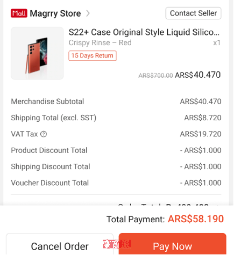 買(mǎi)家預(yù)繳增值稅示例?圖源:Facebook