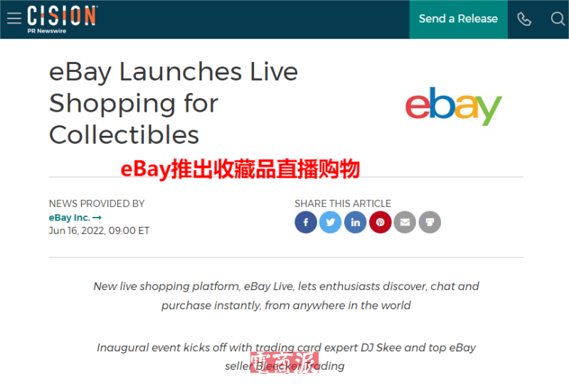 eBay首次推出直播購物功能 圖源:PR Newswire
