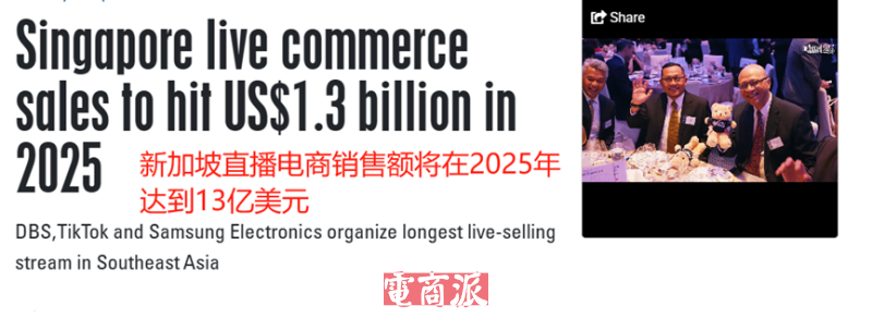 據(jù)新加坡星展銀行發(fā)布的最新研究報告,2025 年新加坡社交電商市場規(guī)模預(yù)計將達(dá)到 32 億美元(約合人民幣 230 億元),而直播電商是核心增長引擎。星展銀行報告指出,今年新加坡直播電商銷售預(yù)計將達(dá)到13億美元,約占社交電商整體市場的40%。