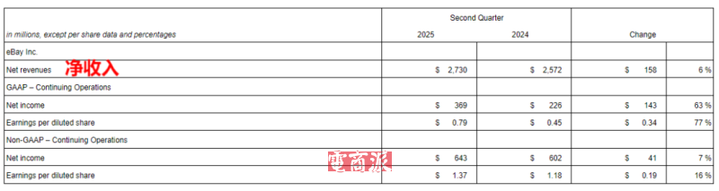 從其業(yè)績情況來看也是相當(dāng)不錯。今年二季度,eBay營收達(dá)到27億美元,同比增長6%;商品交易總額(GMV)達(dá)195億美元,同比增長6%。