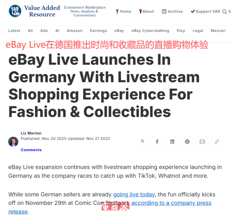 直播電商風(fēng)靡全球,eBay德國上線購物新服務(wù)